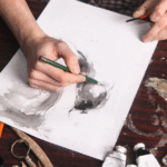 Aquarelverf als medium om kleur vloeiend te laten samensmelten en expressieve accenten toe te voegen.